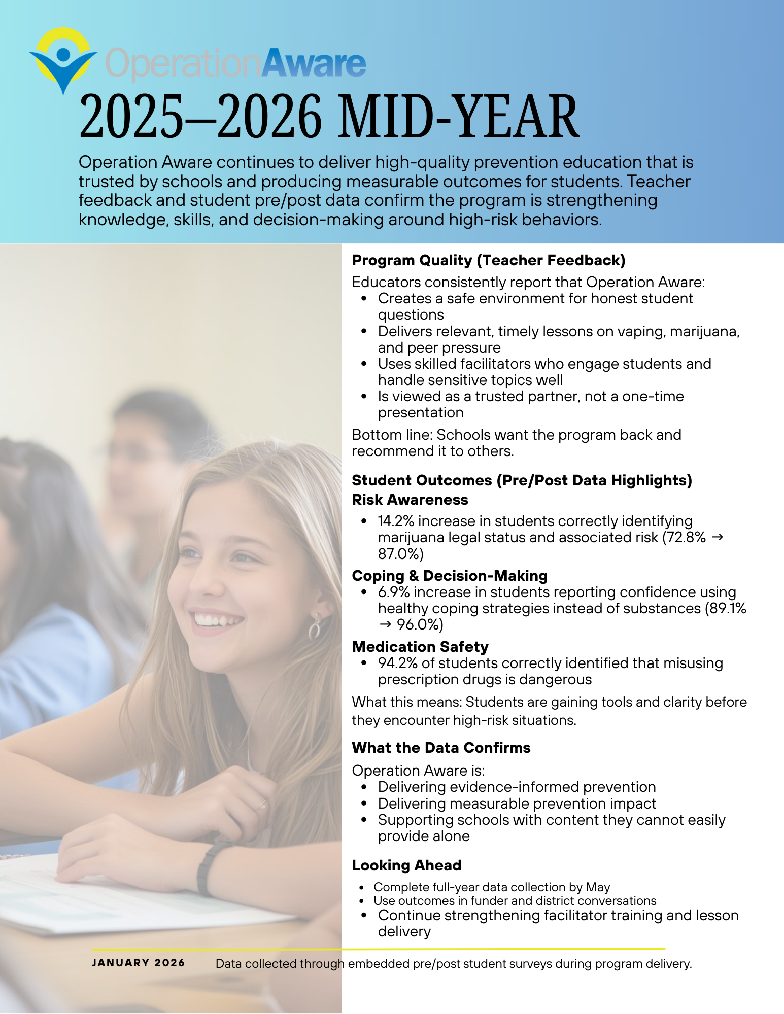 Unless otherwise indicated, the content in this link is proprietary property of Operation Aware. All text, photographs, video, audio, graphic and arrangement of such content is to be used for the informational purposes within the program provided by Operation Aware. Any other use, including for any commercial purposes, is strictly prohibited without our express prior written consent. Systematic retrieval of data or other content from the services, whether to create or compile, directly or indirectly, a collection, compilation, database or directory, is prohibited absent our express prior written consent.